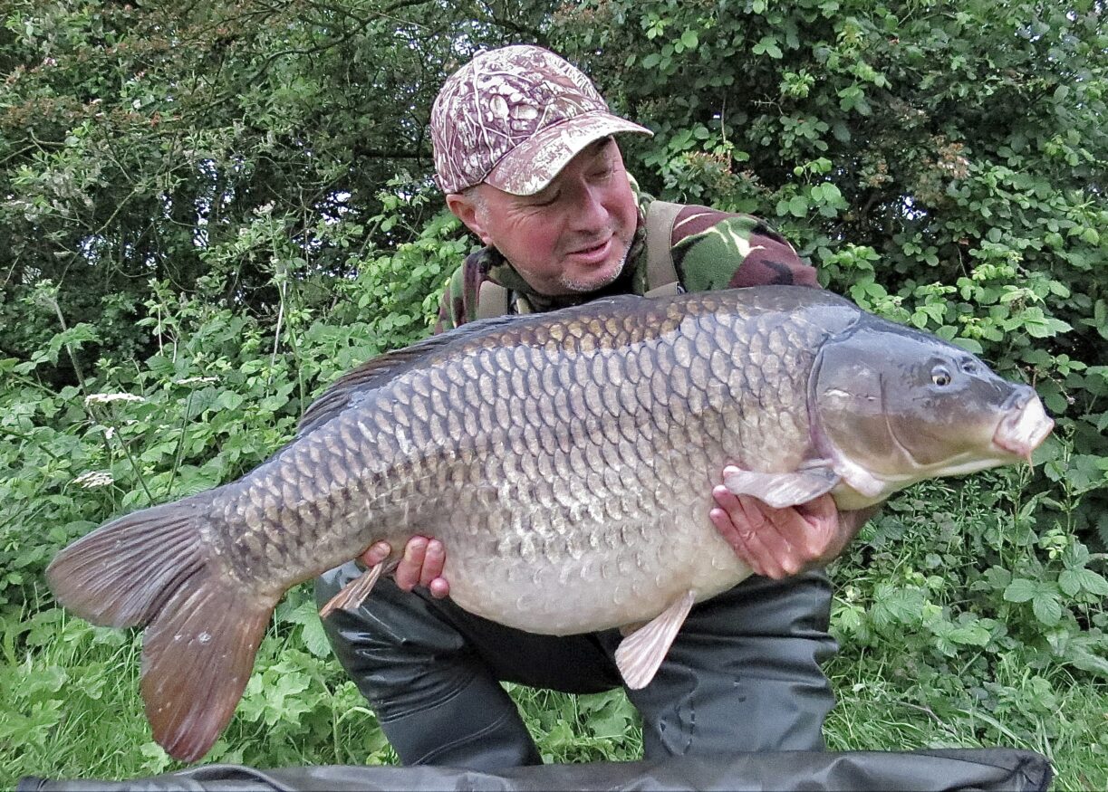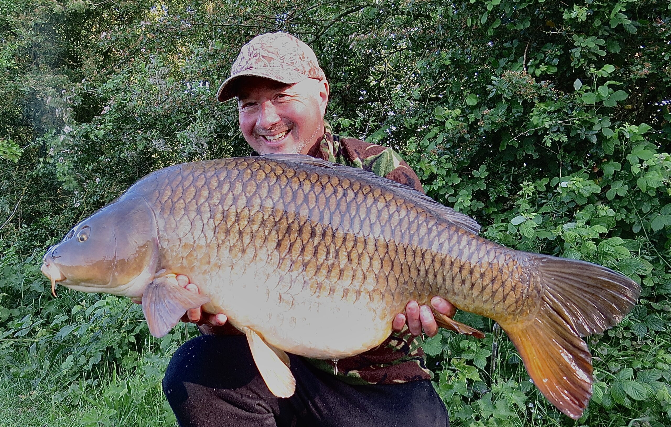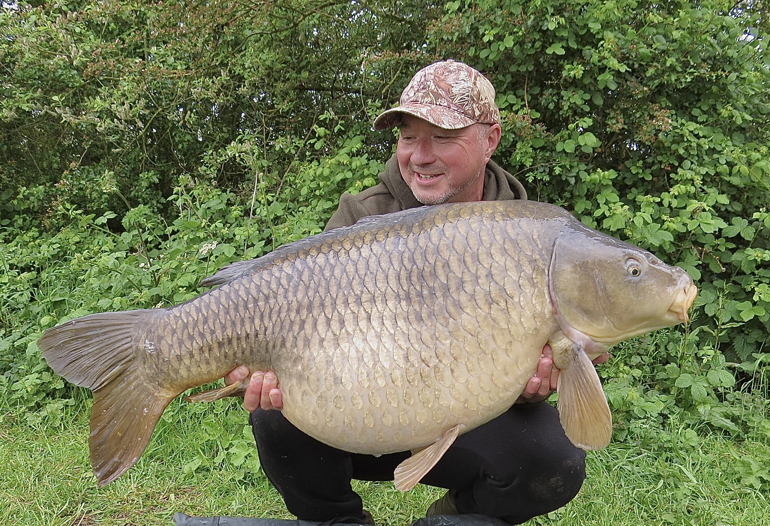 The fish was another huge common and had a faint but distinctive two-tone colouration that I recognized as a fish that one of the bailiffs had caught about 6 weeks previously at 43+, this time however, she looked absolutely massive!