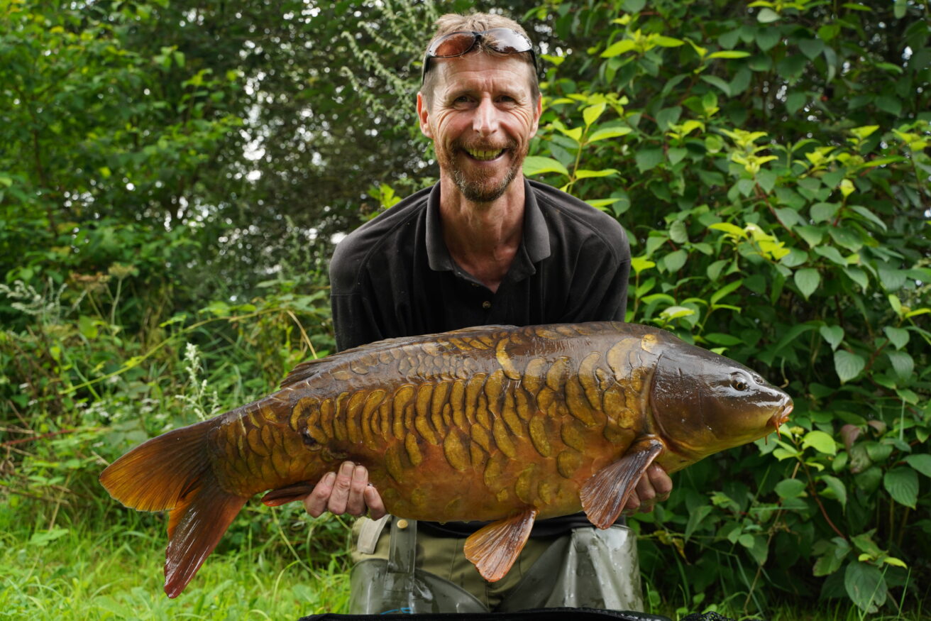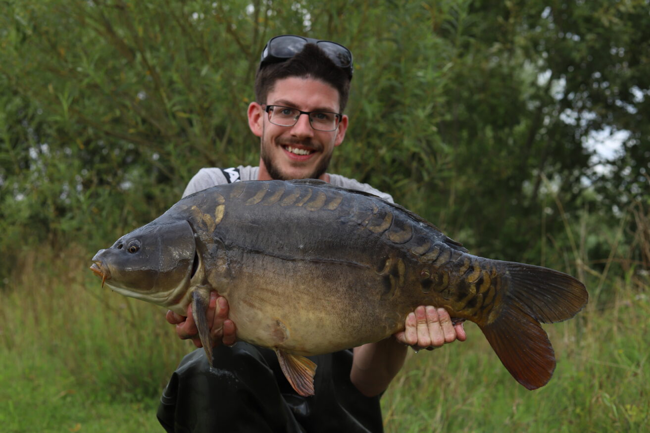 Well work it did and before long Cullum watched a large mirror glide onto the spot, followed by a smaller one and then the clutch went into meltdown, fish on!