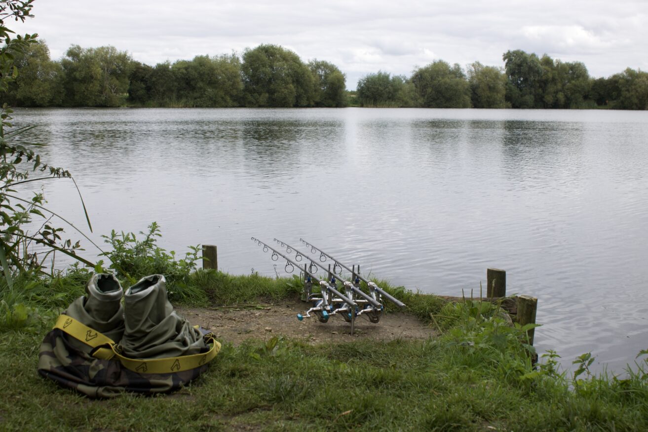 As a result of the injury, I had to refuse an invitation to the Embryo social which I was gutted about. It was local too at their syndicate lakes in Abingdon, a venue I’d really like to fish. As such I haven’t managed much fishing really through July and fished three fruitless nights in total for the month on the syndicate. I have walked it plenty though and am continuing to learn what I can of the place. August continued in the same way initially. I did manage a small common one night, however towards the end of the month I managed an overnighter in the ‘Barbel’ swim that proved more fruitful. The night time passed and my son was dropped off the following morning as it was my turn for childcare. As we sat there, the late morning provided a violent take on my left hand rod. The fish powered 60 yards immediately and on a long line kited into the reeds to my right. Readying the boat, I winched myself out and saw a good common thrashing around in the reeds. As I freed it, it quite literally towed the boat through the reed bed and out into the lake. Eventually, she rolled over the net and I slowly rowed back to shore. As I was sorting the fish, the middle rod lifted and was away. With a fellow member helping out and Riley (my son) running around with nets and slings, the fish was secured whilst I did battle once more. It found a weed bed half way in and again I took to the boat. Once above in the boat, it simply popped up and another smaller common was secured. Back at base I was busy readying rigs and clipping rods up when the recast middle rod went yet again. Three takes in the space of an hour. By now the swim was chaos and with a big smile I was again forced to the boat.