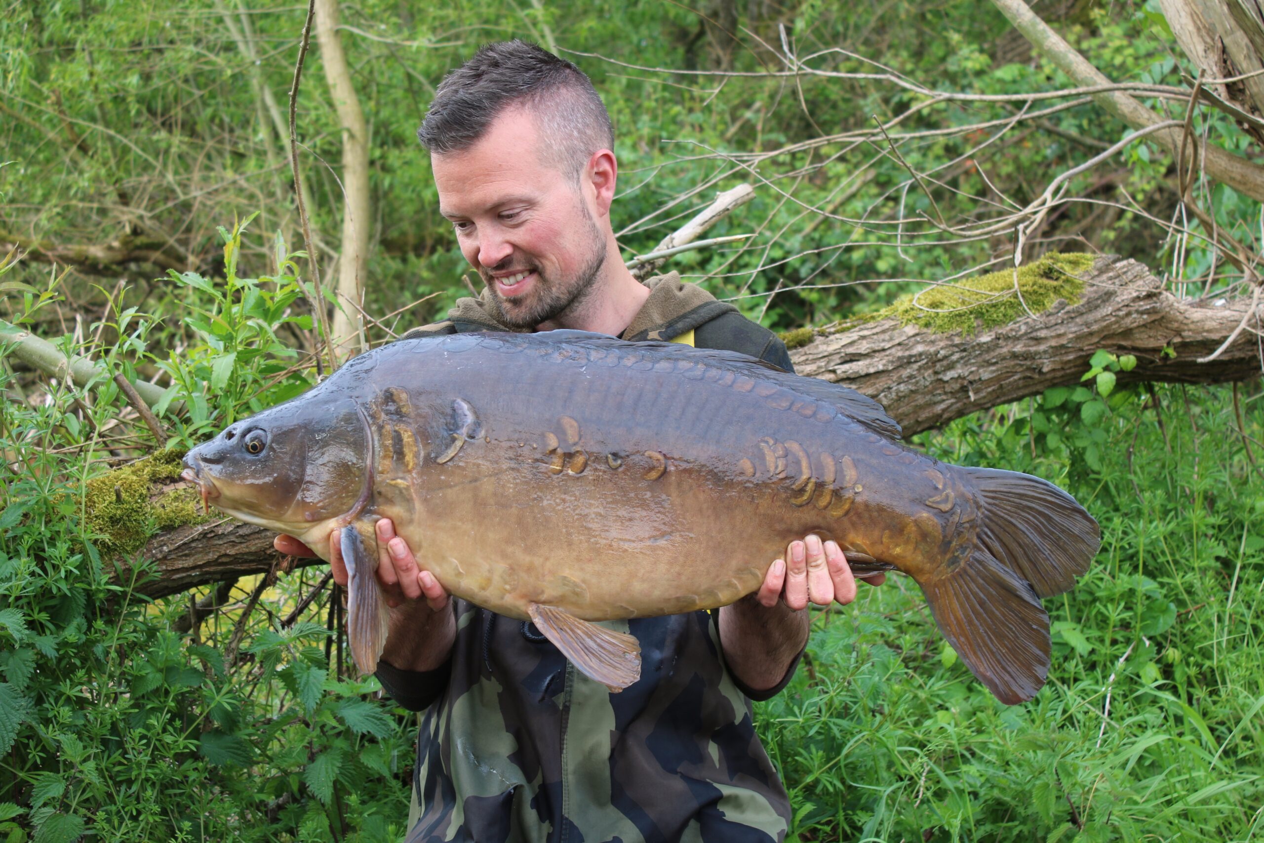 The first fish came surprisingly quickly and after a few weed beds were found, a lovely mid twenty succumbed to the waiting net. The rig was quickly whacked back out along the tree line and a little top up before dark. The rods in the centre of the bay didn’t do much at all for the session, and it was the same rod that again went the following morning. This fish locked me solid and I soon realised I wasn’t landing this one from the bank. The boat was deployed and in some strong wind I winched myself out to the offending weed. The fish popped up with relative ease once I was above it and as it did so I couldn’t believe its beauty. I’m sure you’ll agree from the photos that although only low twenty, its immense scale pattern was very impressive. With work looming, I quickly wrapped up and vowed to return when I could.