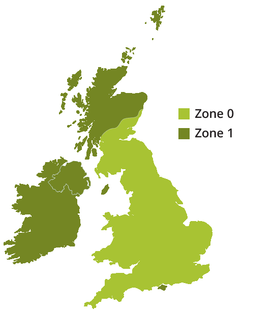 For Zone 1 please see table above.