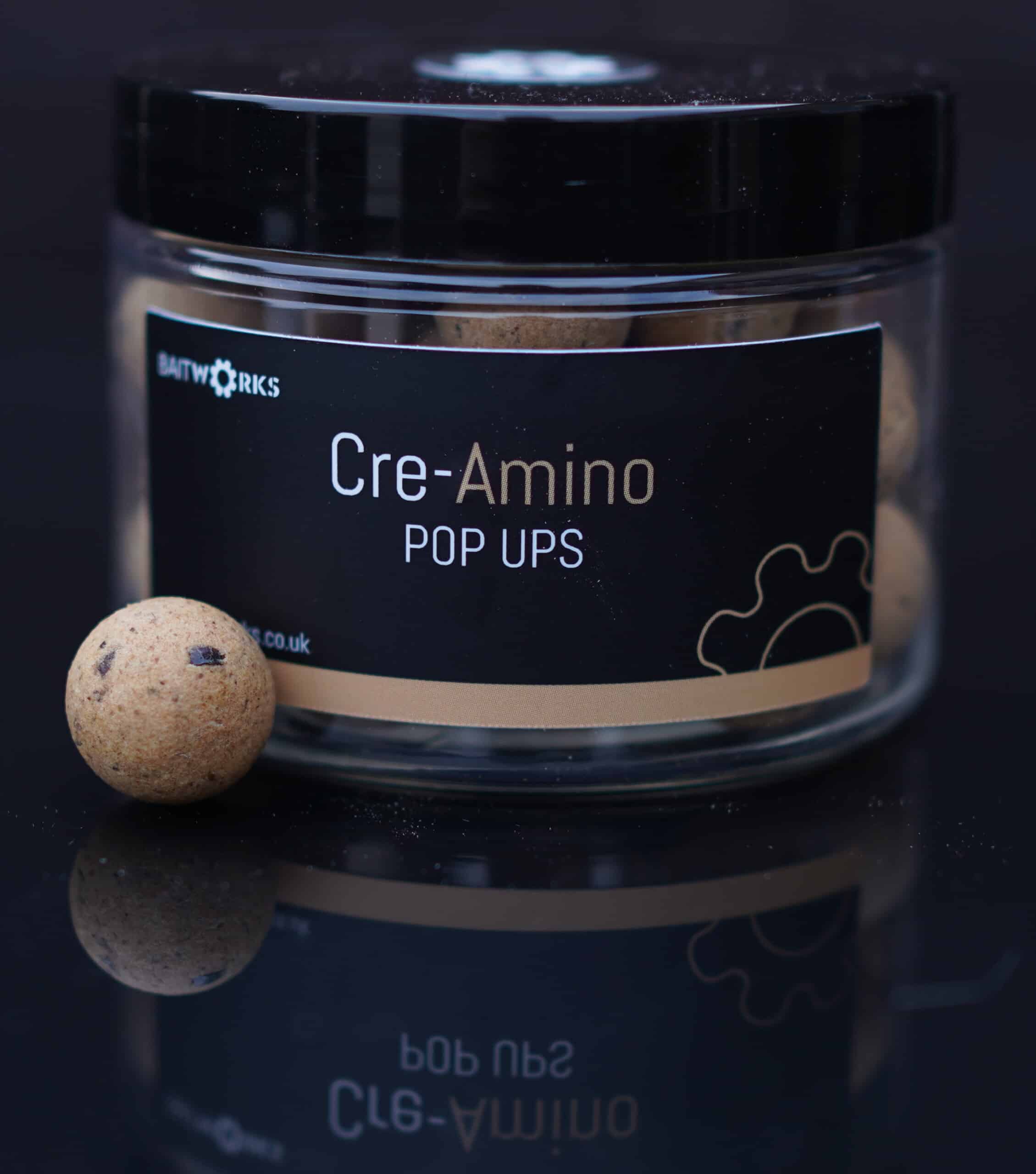 Made lighter than in colour than the boilies as the food baits go lighter as soon as they’re submerged in water. Extremely buoyant pop ups made from our CreAmino mix and liquid attractor profile, these pop ups will stay popped up for days. All year round confidence.
