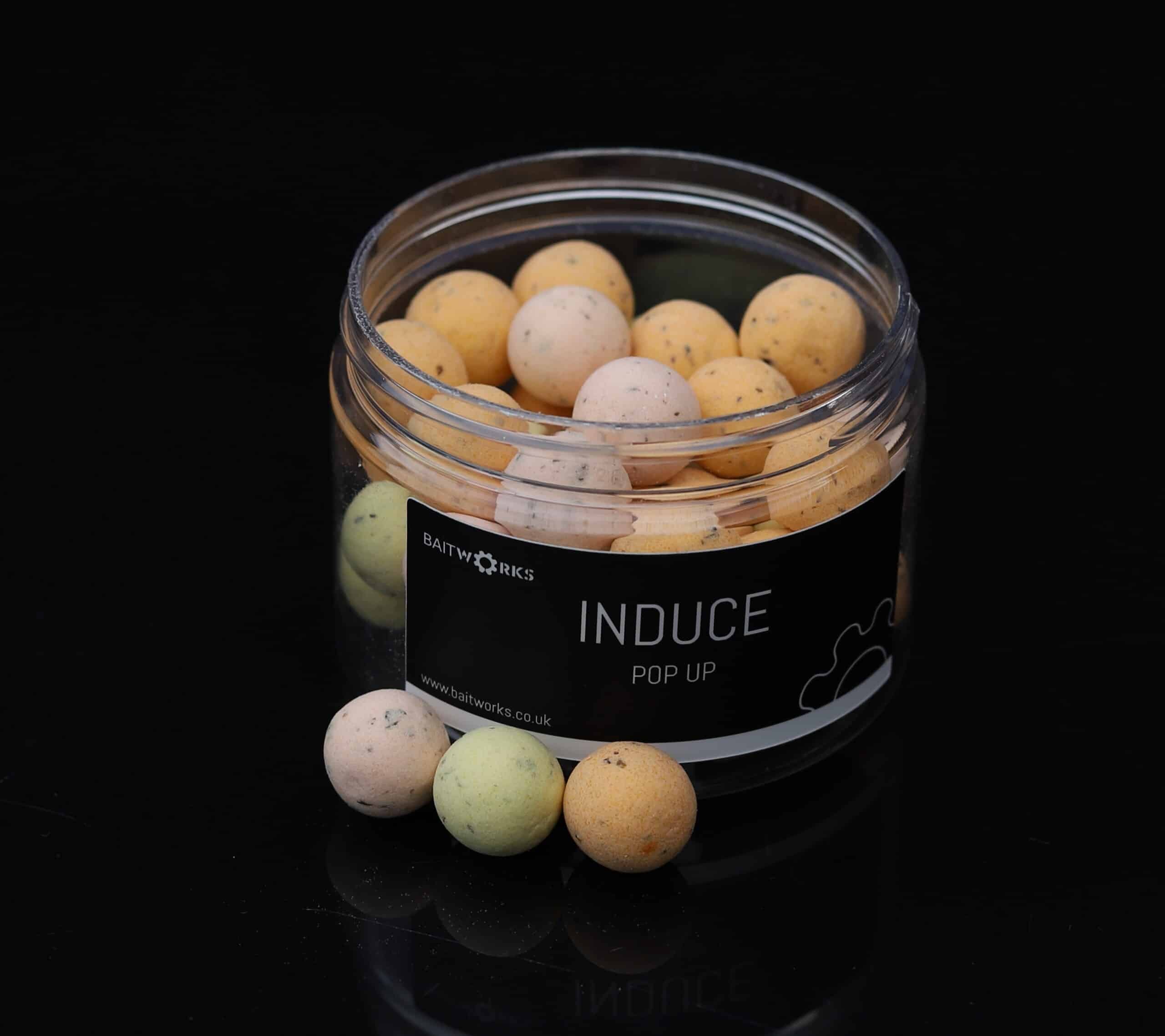 Our INDUCE Pop ups have been in the pipeline for a few years now. These smell divine, the best way to describe the beautiful aroma when you lift the lid is a complex blend of esters and lactones producing a sweet, ripe, almost fruit berry type smell (hard to describe or put your finger on it!). They consist of numerous fruit classics in liquid and powdered form, rounded off with a pure, complex blend of essential oils. Our new, super buoyant pop up recipe based on a HNV, high quality milk protein base mix, make these ideal for all of todays rigs. IT-WORKS