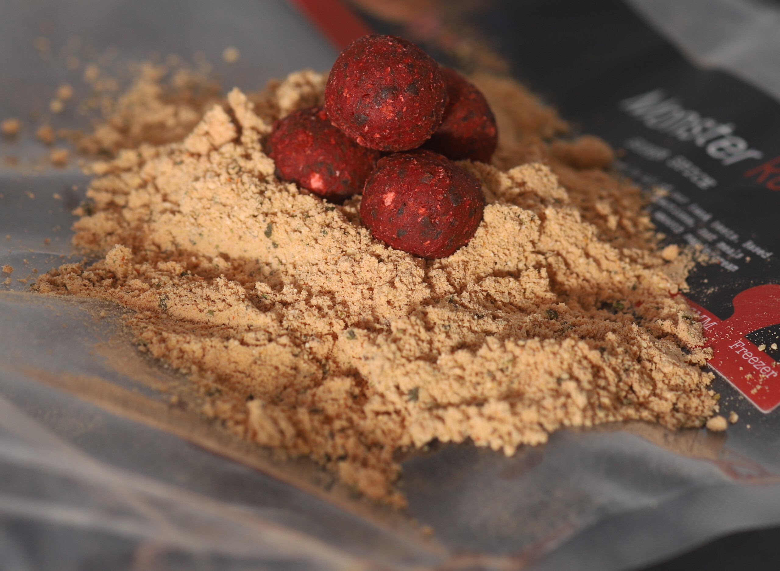 If you like rolling your own Cork Ball pop ups or Hard Hookbaits then these basemix packs are perfect. This one is our Monster Red, the Red is a devastating blend of high quality Hydrolyzed vegetable proteins that trigger and stimulate both the olfactory and gustatory systems of the cyprinidae (carp) family. These are combined with a devastating blend of creamy cheese powders, mixed spices, sweet nut meals, milk fractions, bird foods to create the all season, go anywhere bait.
