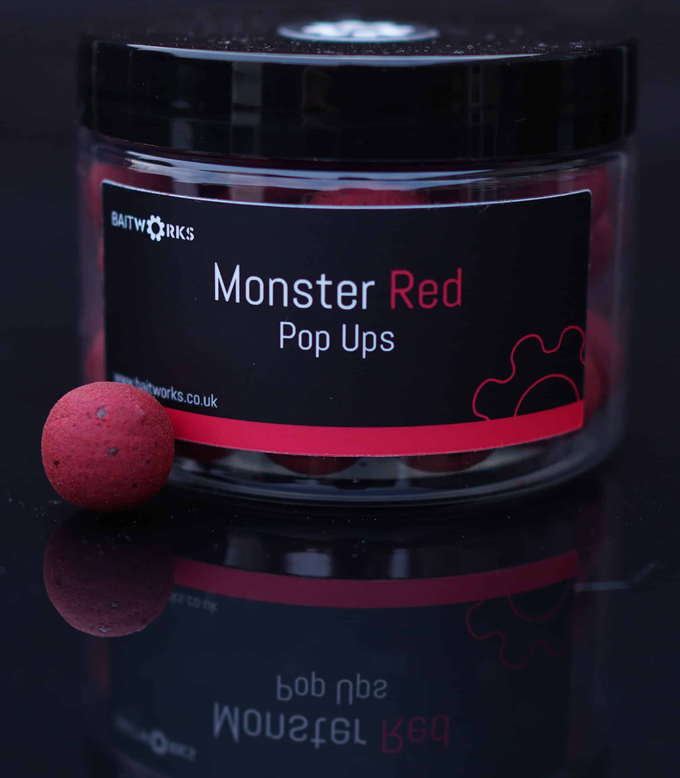 Super buoyant pop ups with a creamy maple/garlic attractor profile. These pop ups complement our classic Monster Red boilies, including key ingredients such as a variety of spices and marine products, lipids, robin red, salts, vitamin and mineral supplements.