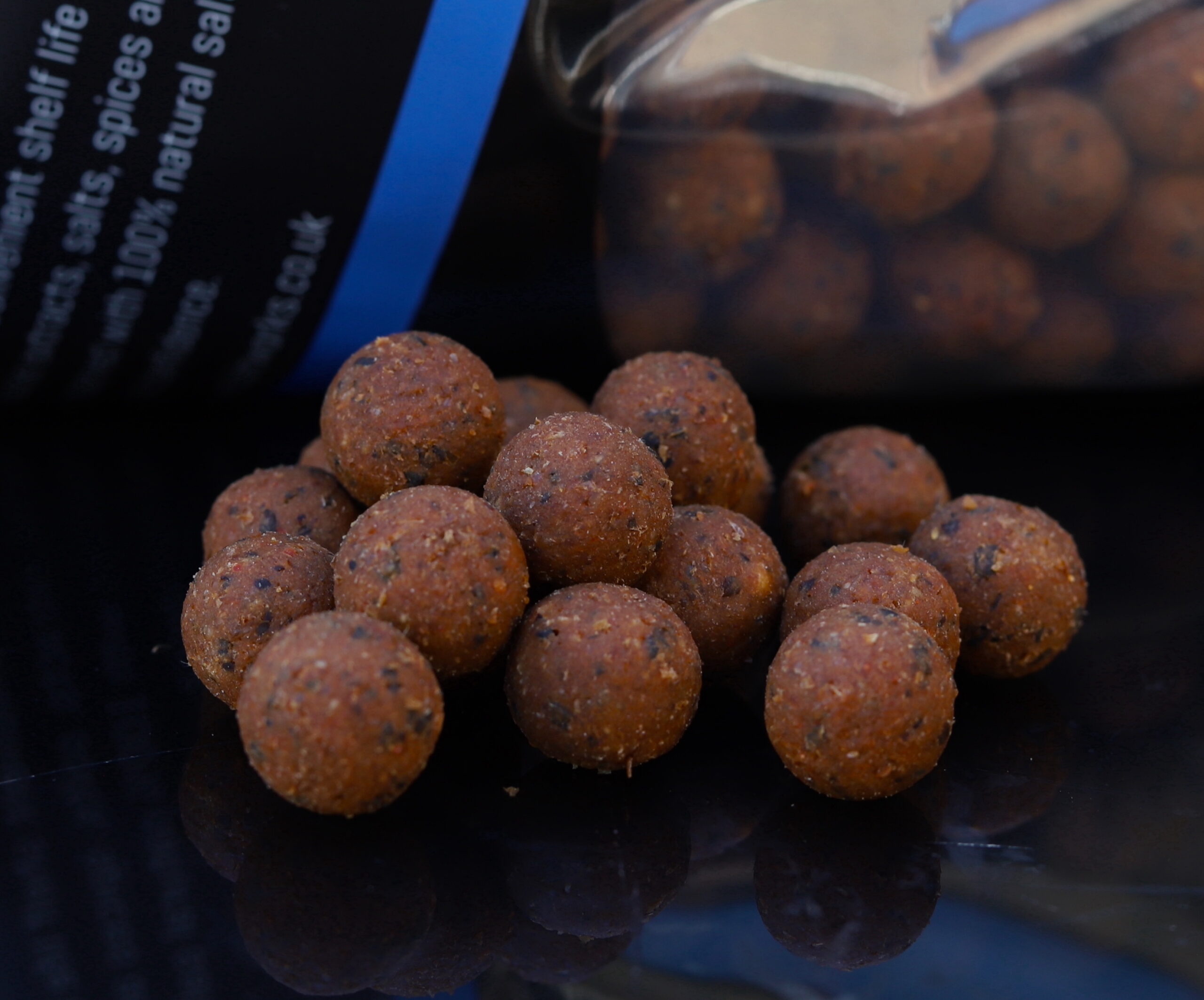 Royal Marine Minis 11mm – The Royal Marine is a blend of enzyme-treated marine proteins, derived from shellfish (smoked) and mixed crustacean extracts in both liquid and powdered form. This gives the boilies an exceptional taste profile that stimulates the carp’s olfactory and gustatory systems via rich a concentration of freeform, very water-soluble amino acids. Coupled with our low-level Scent From Hell flavour profile, you get an all-season, big-fish heavyweight boilie. All year food source can be used for 12 months of the year. Keep boilies frozen between sessions