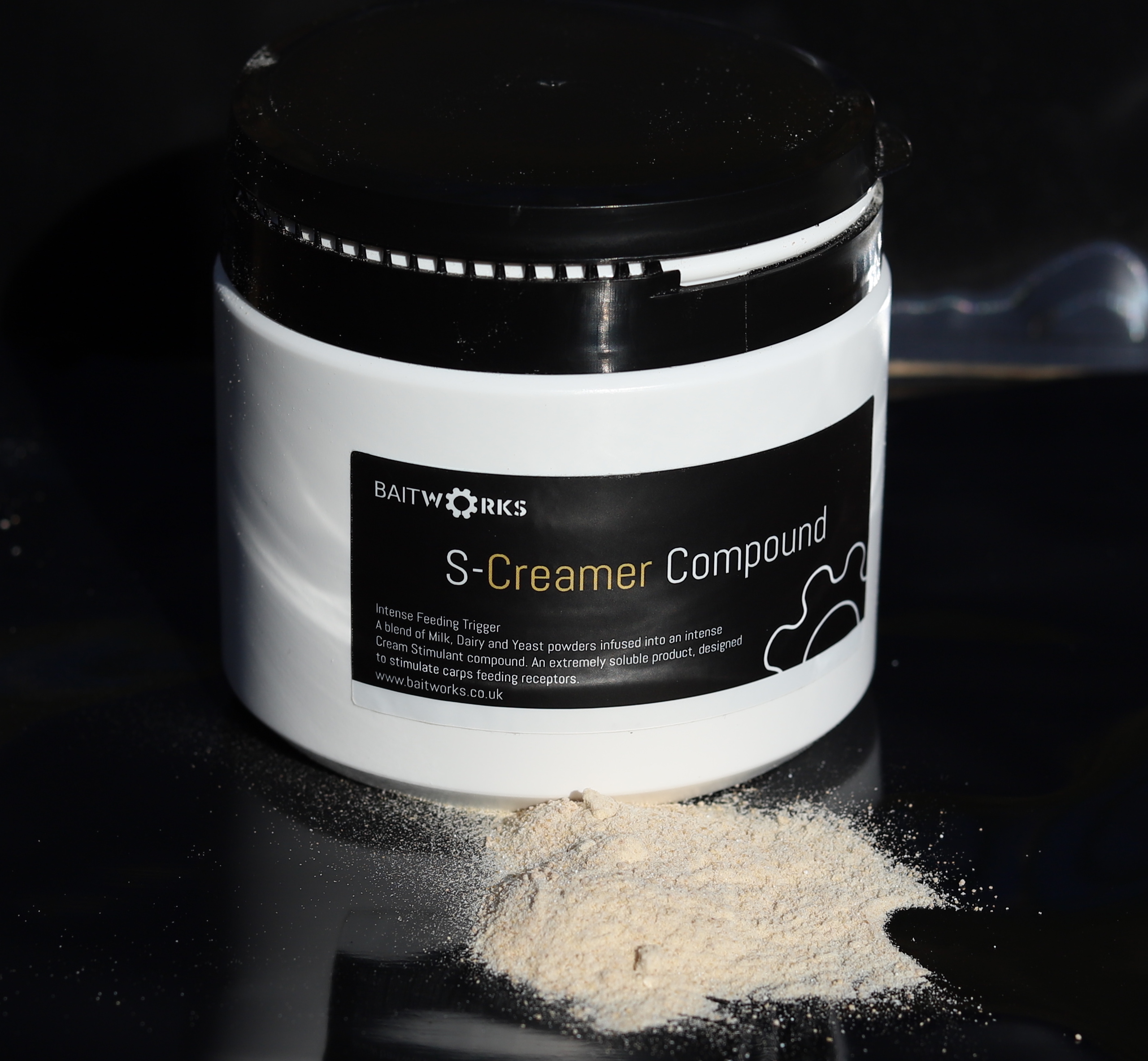 The long awaited S-Creamer Compound. Many years in the making. A mega attractive combination of Yeasts and Dairy products, combined with a beautiful Cream stimulant. Smells incredible and is packed with free-Amino acids that the cyprind family simply find irresistible. A versatile, soluble powder that can be added to coat your hook baits, free bait, added to stick mixes, spod mixes, the list is endless. Provokes involuntary aggressive feeding via an olfactory and gustatory response.